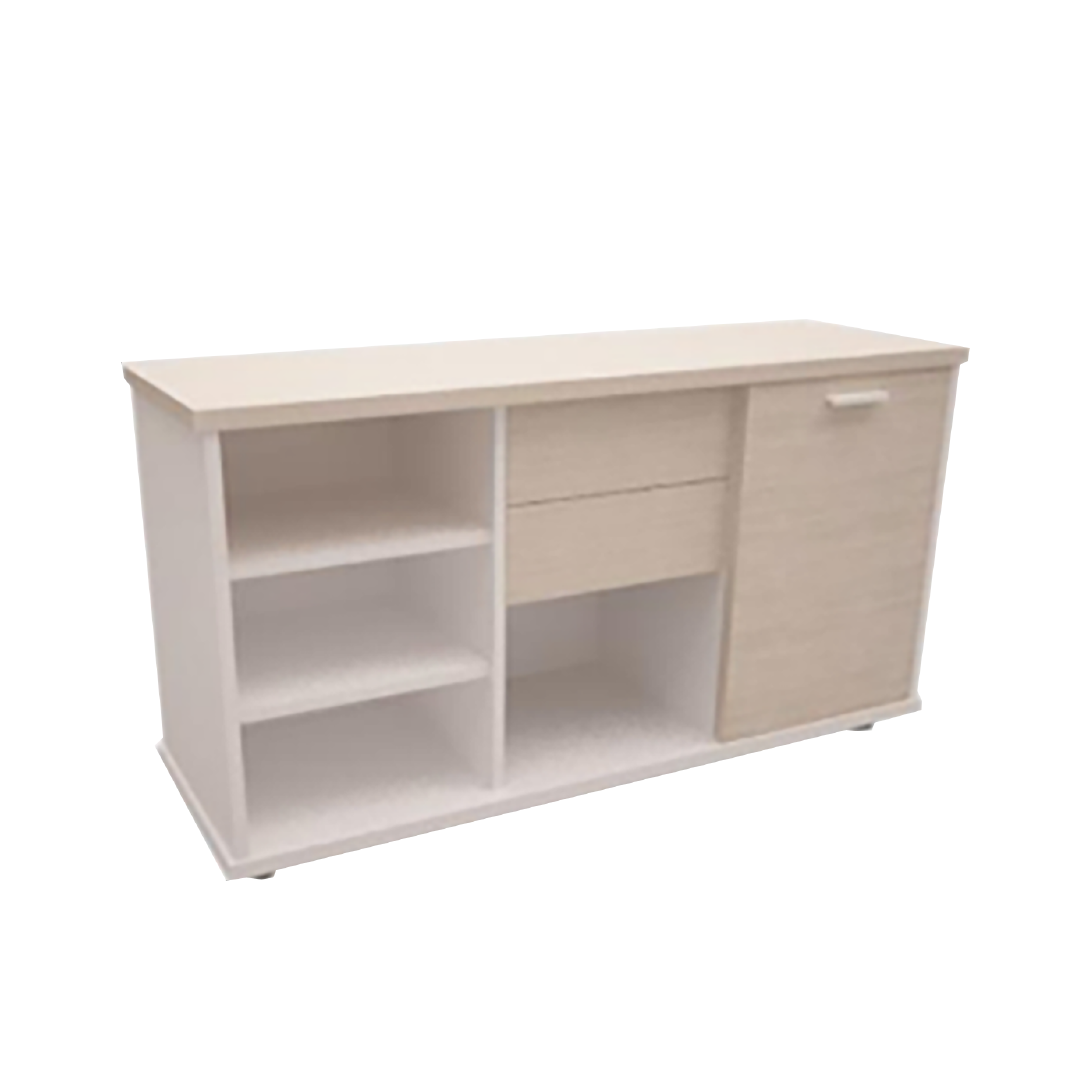 E1 P/B Laminasi Melamine (MFC), Pintu geser dengan Pengunci tekan, pegangan aluminium, Roda.