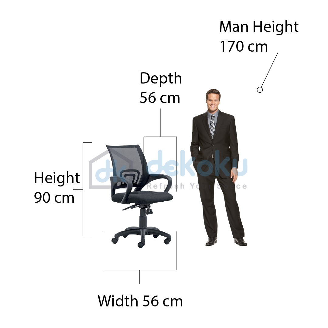 Sandaran dengan kain mesh, sehingga memberikan sirkulasi udara membuat punggung tidak lembab saat di guanakan.