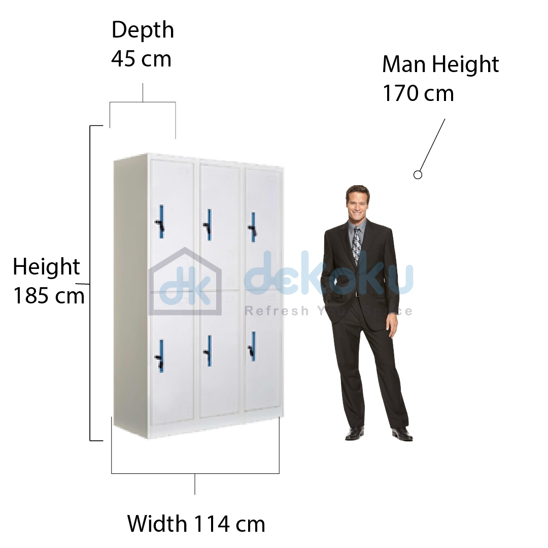 24008500 LEMARI LOKER 6 PINTU/METAL LOCKER 6DOORS WHITE/BLUE HANDLE (U/1)