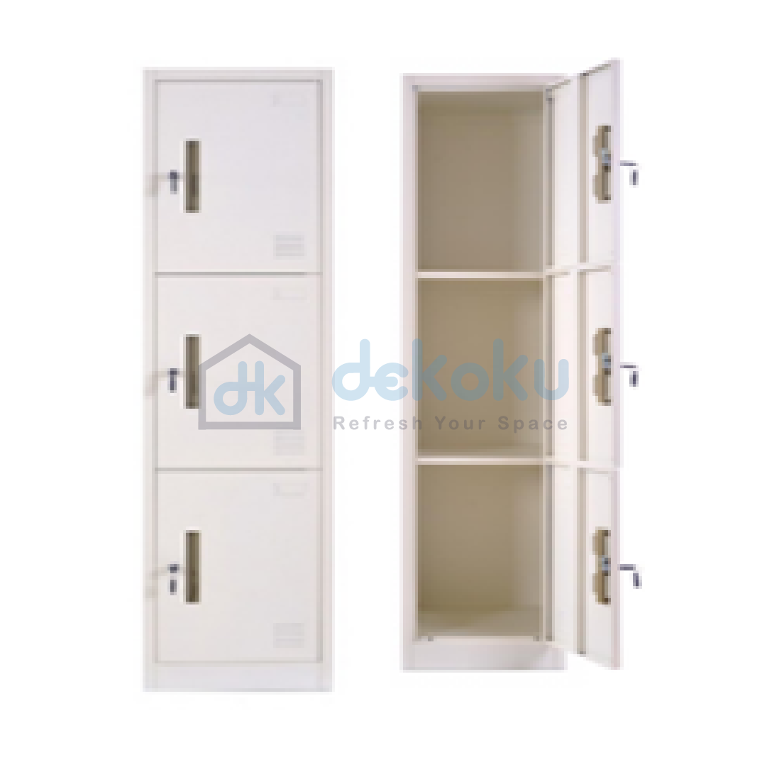 24008501 LEMARI LOKER 3 PINTU/METAL LOCKER 3DOORS WHITE/GREEN HANDLE (U/1)