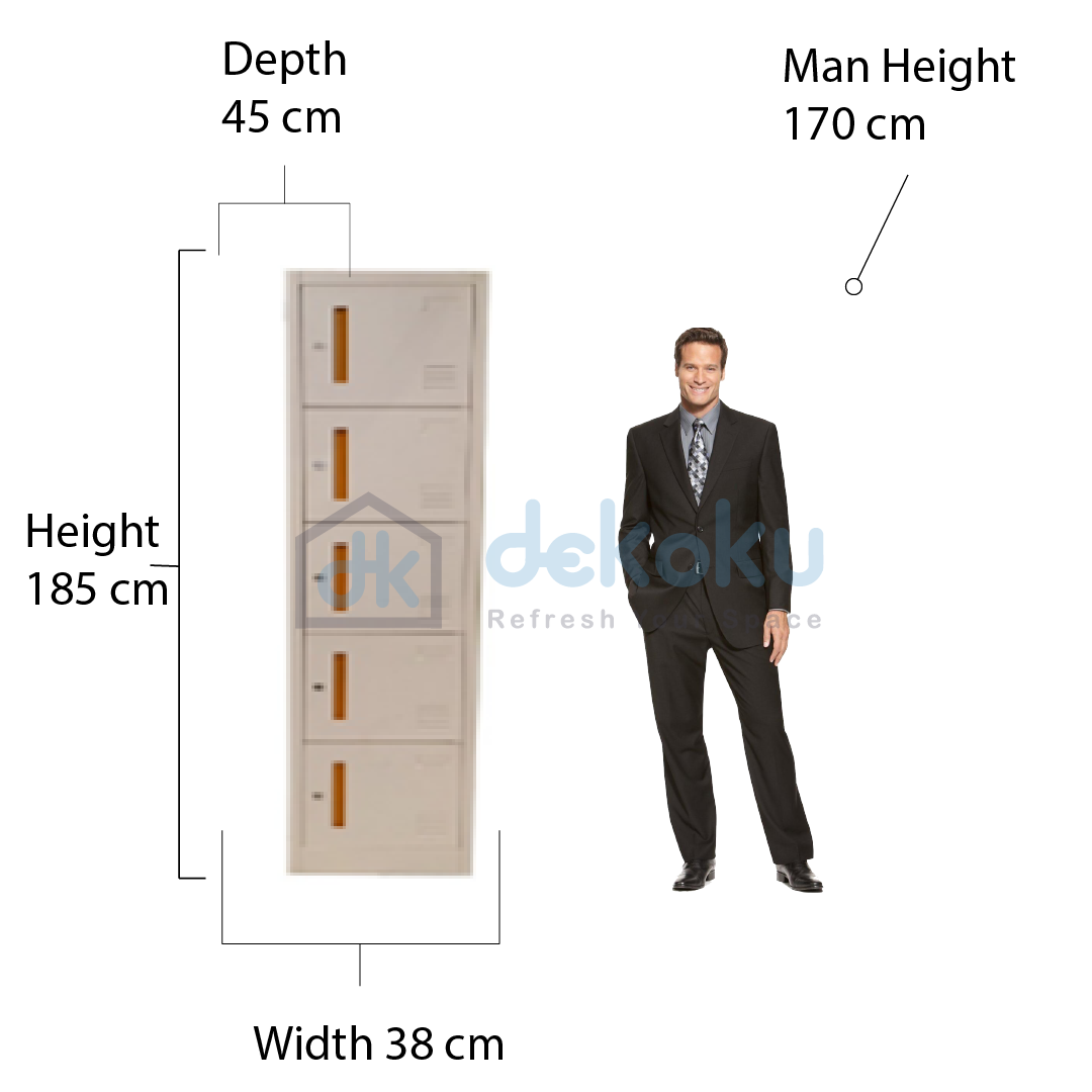24008505 LEMARI LOKER 5 PINTU/ METAL LOCKER5DOORS WHITE/ORANGE HANDLE(U/1)