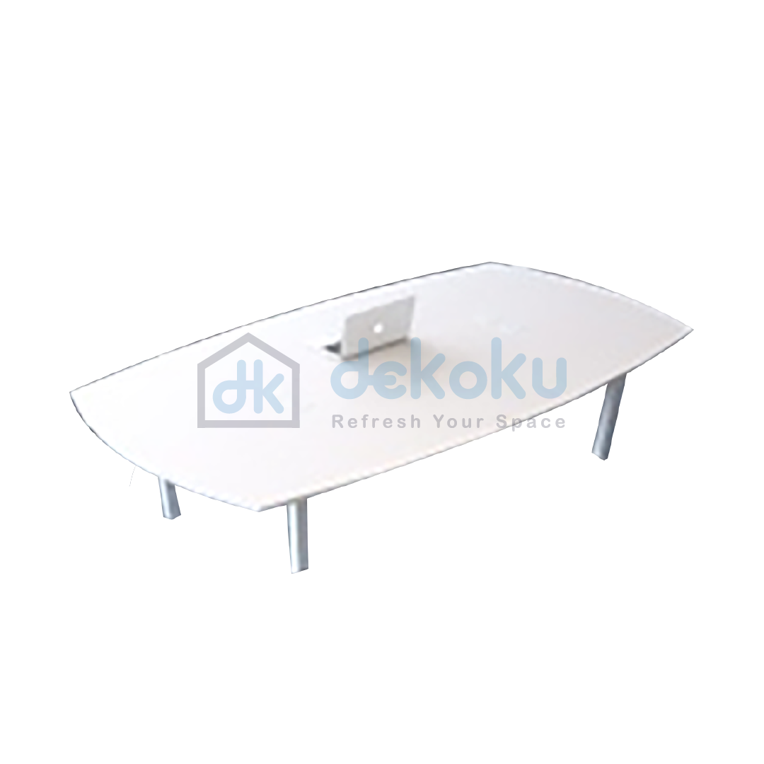 E1 P/B Laminasi Melamine (MFC), Ketebalan Top 2.5CM, Kaki Besi kosong 4x4, Lubang kabel PVC Persegi