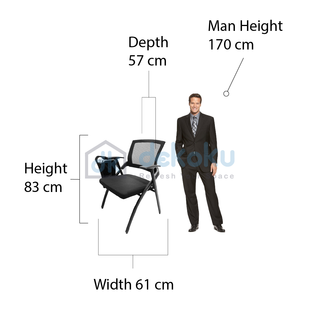 Material : Back : Mesh Upholstered Seat : Foam with Fabric Base : Metal Finished Powder Coating Diimensi : 61x57x83cm Bisa Dilipat
