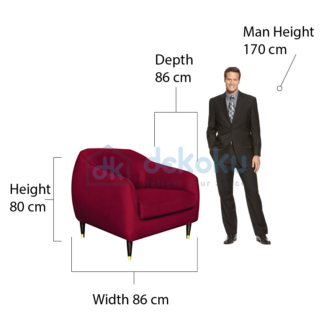 24008851 SOFA FABRIC SATU DUDUKAN / 1 SEAT MAROONMaterial : Fabric with Wooden LegsWarna :Mint Green, Yellow, Light Brown, Mist BlueDimensi : 86(p)x86(l)x80(t)